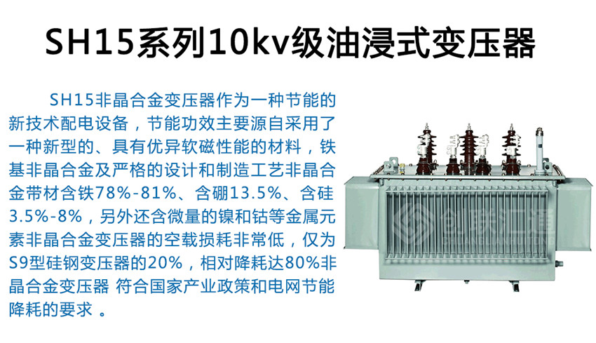 SH15非晶合金油浸式變壓器可用于高層建筑、商業(yè)中心、地鐵、機(jī)場、車站、工礦企業(yè)和發(fā)電廠,特別適用易燃、易爆和防火要求高的場所。因此,非晶合金變壓器是戶內(nèi)供電網(wǎng)絡(luò)中最理想的節(jié)能型配電設(shè)備.